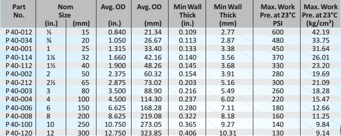 Table 3.1 PRESSURE RATING @23°C uPVC SCHEDULE 40